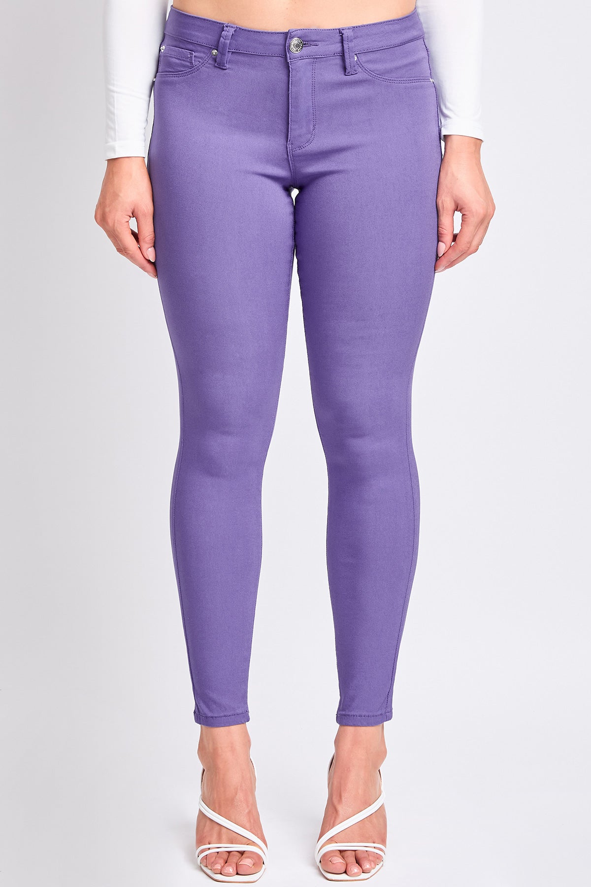 Literally, our best seller just got even better! Our Women's Hyperstretch Forever Color Mid-Rise Skinny Pant has a sleek, mid-rise fit that features the softest and most flexible fabric, available in a variety of colors. Finished with faux front pockets, single-button with zip closure, and belt loops. This fabric has been improved for greater color fastness, making it withstand more wear and washes. This is why we named this pant, Forever Color: it will be forever yours. Let the pants do the talking and style them simply with a solid top or blouse and booties or heels. Throw over a leather or denim jacket when the temperatures drop!