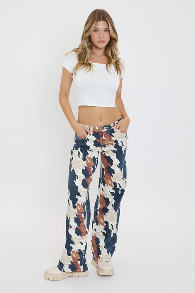 Women's Britney Printed Low Rise Wide Leg Jeans
