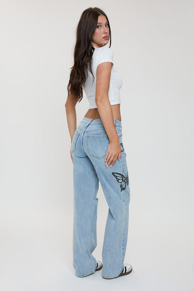 Stand out in the Women’s Brittany Wide Leg Jeans, where vintage-inspired details meet modern comfort. Featuring light destruction and unique print markings, these jeans deliver an effortlessly cool, lived-in vibe. The low-rise fit sits comfortably on the hips, while the wide leg creates a relaxed yet flattering look.