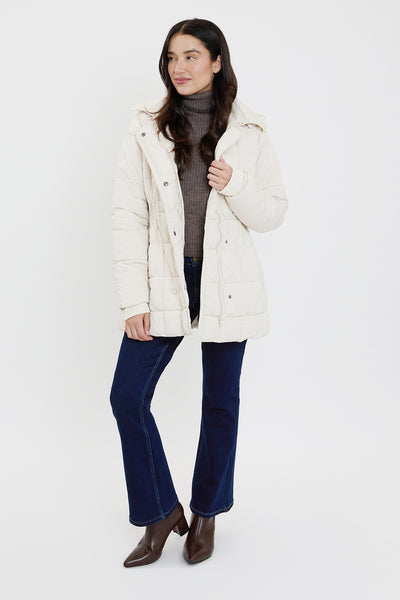 The puffer construction provides excellent insulation, ensuring you stay cozy during chilly days. The cinched waist detail adds a flattering, feminine silhouette, giving you a tailored look that enhances your natural shape.