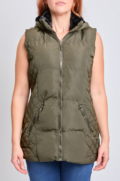 With a convenient zip-up front, this vest offers easy wearability and a secure fit. Whether you're dressing up for a brisk walk in the park or layering for a casual day out, the Women's Faux Fur Puffer Vest is the perfect addition to your outerwear collection.