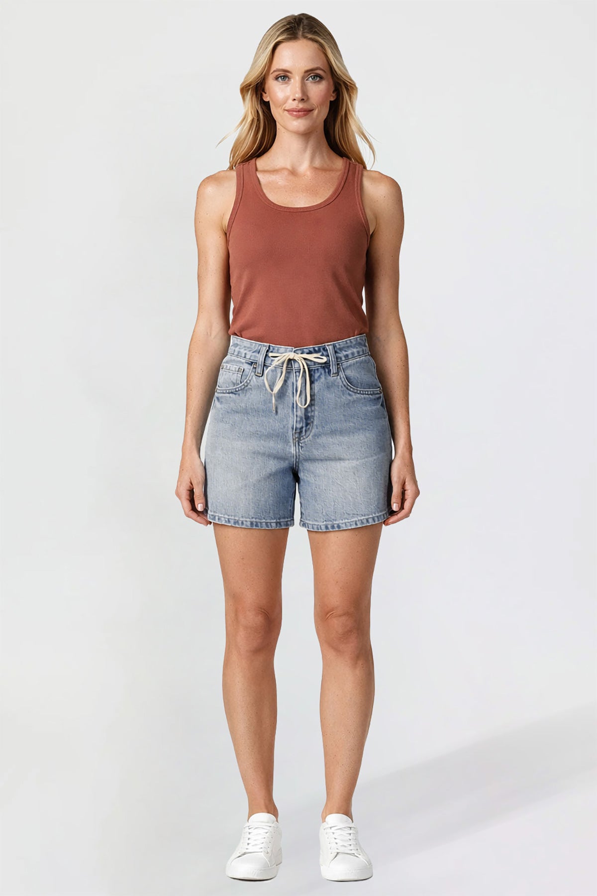 Stay effortlessly stylish in our Women’s Relaxed Tie Front Shorts. Designed with a relaxed fit and a comfortable drawcord detail, these shorts are perfect for casual days with a touch of laid-back flair. Classic five-pocket styling and a button-and-zipper closure make them easy to wear, while soft cotton construction ensures all-day comfort and durability.