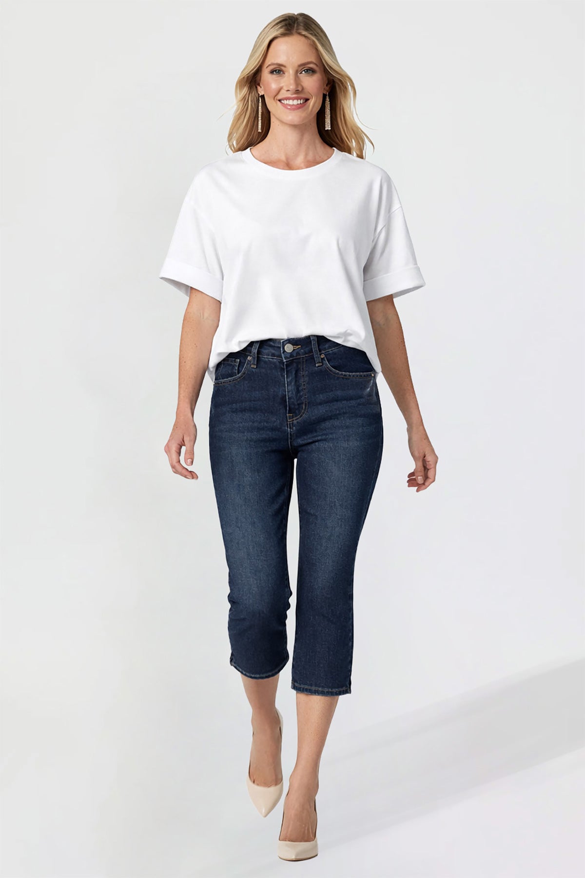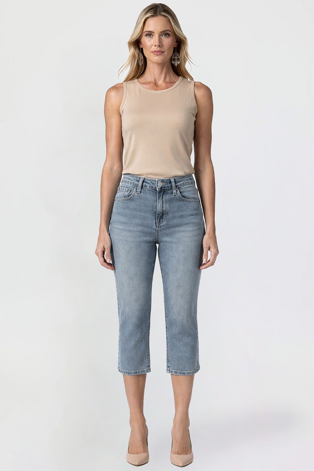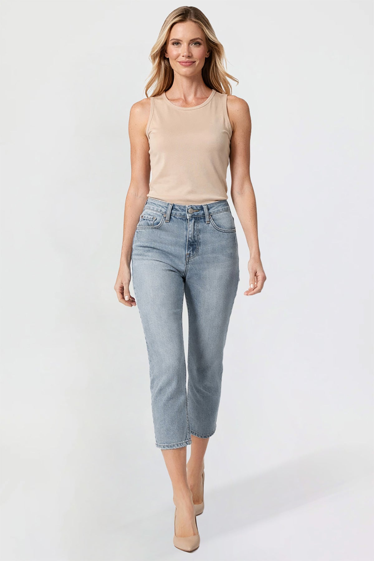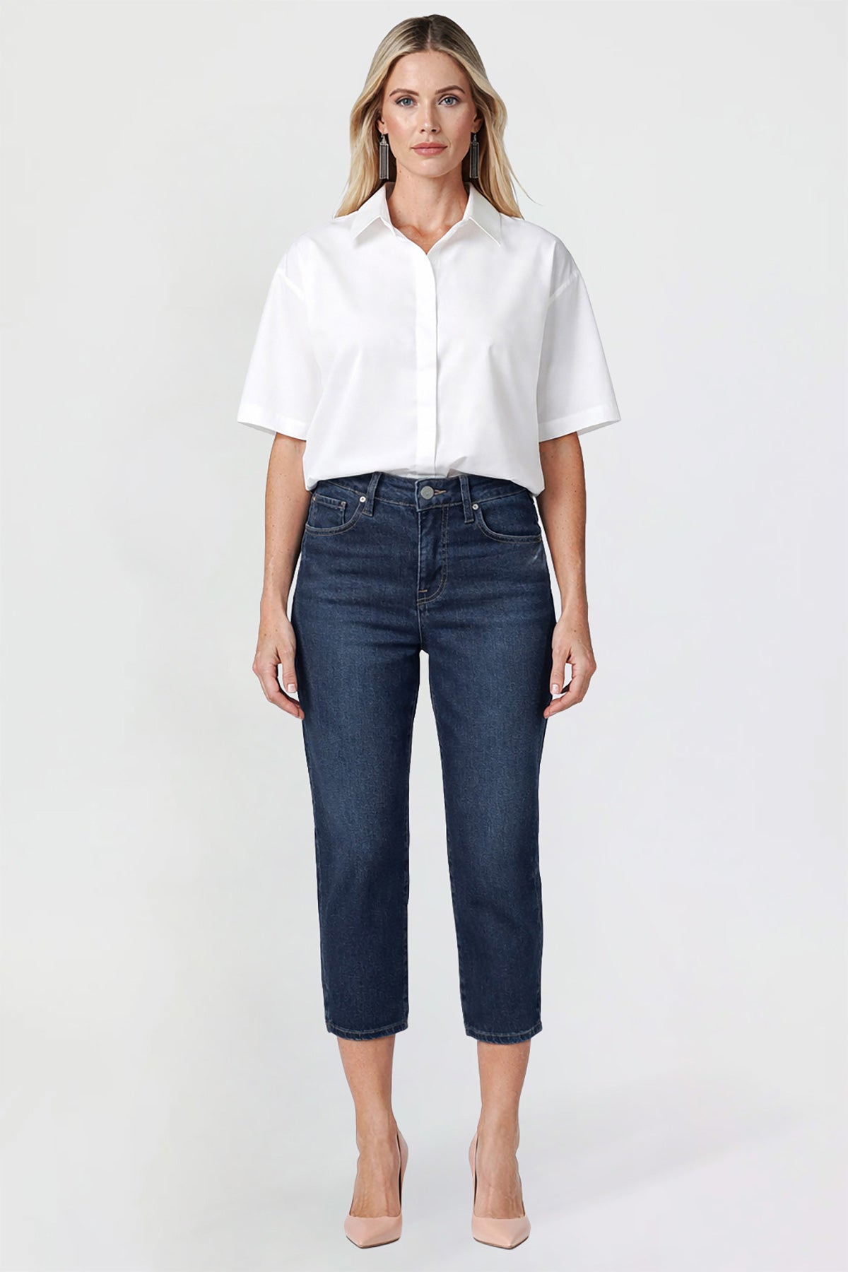 Step into modern comfort with our Women’s Premium Stretch High Rise Cropped Wide Leg Jeans. Designed with a flattering high-rise fit and built-in tummy control, these jeans offer a smooth, confident fit. The wide-leg cut and cropped hem create a contemporary, on-trend look, while classic five-pocket styling and a button-and-zipper closure keep them timeless. MAde from a soft stretch denim blend, they move with you for all-day comfort and style.