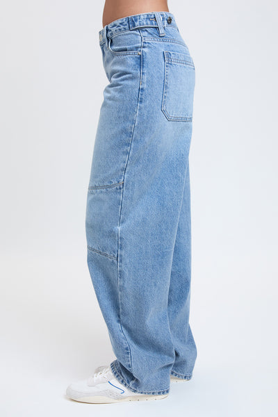 Make a bold statement with the Women’s Moto Baggy Barrel Jeans with Seam Detail, a fresh take on streetwear-inspired denim. Featuring a relaxed rise waist and a relaxed barrel-leg silhouette, these jeans offer a fashion-forward shape that’s both comfortable and effortlessly cool.