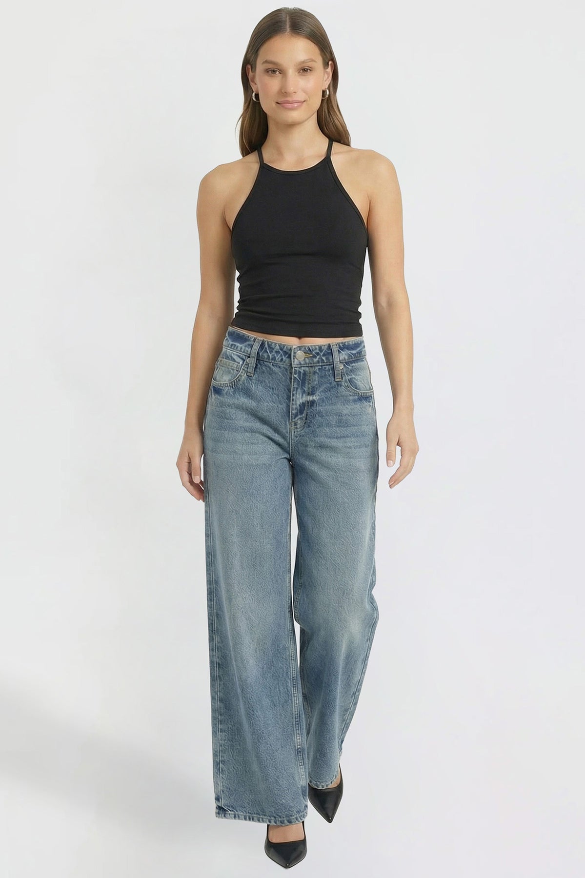 flare, relaxed, wide leg, etc.). The same body measurements may fit differently