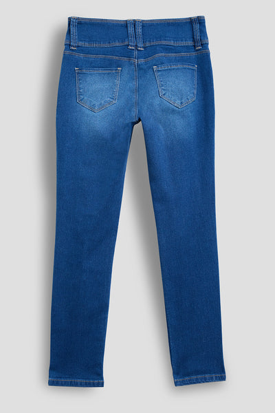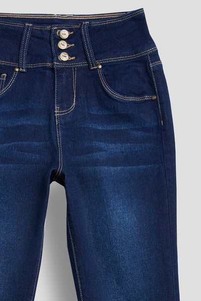 Vintage-inspired and totally comfy! Our Girl's 3-Button Basic Skinny Jean With Faux Front Pockets provides a retro twist on your favorite skinny jeans! Featuring an exposed 3-buttonfly, subtle fading, and front whiskering for a perfectly “lived-in” look. You’ll love how stretchy and comfortable these jeans are-perfect for all-day wear! Pair these with your favorite cardigan and sneakers for a classic look!