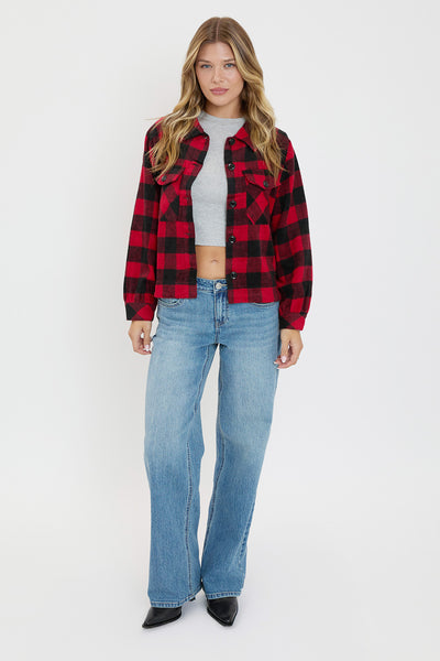 Transition from Summer to Fall with our new Oversized Plaid Shacket! Featuring long sleeves with a cropped fit, two front pockets, five button closure and thick collar. Style with a pair of dream fit jeans and a cute top for a look we are loving.