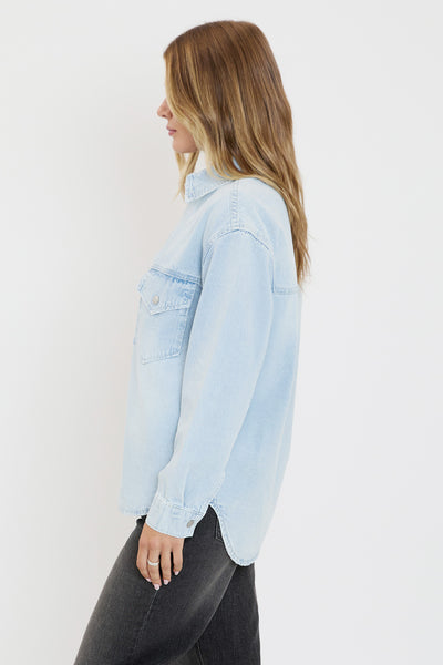 The perfect layering piece for your spring wardrobe! Our Long Sleeve Oversized Shacket doubles as a shirt and jacket – making it an essential to have! Designed with an acid wash denim fabric for a vintage-feel. Made with snap front buttons for convenience and ease. For an easy look, wear this shacket over a mini dress or with denim shorts. For a summery vibe, pair with a bralette and distressed shorts. Complete the look with sandals!