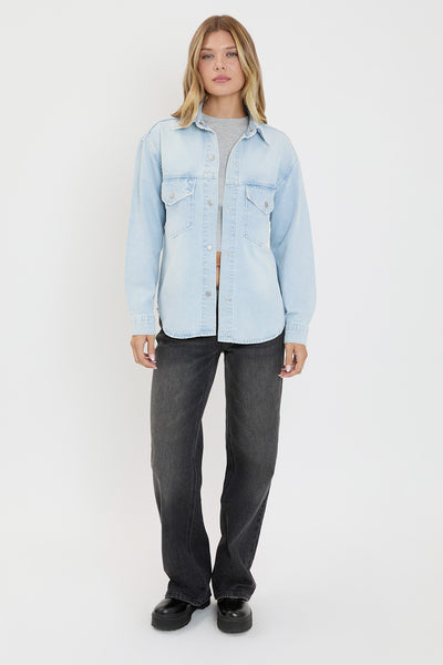 Women's Long Sleeve Denim Oversized Shacket
