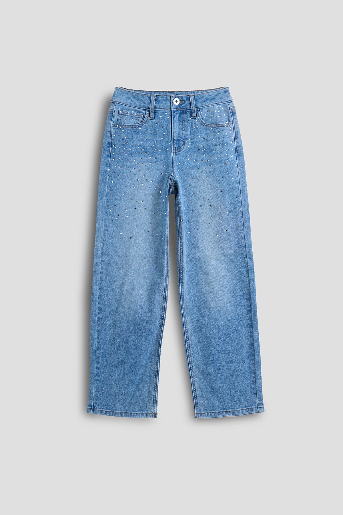 Add a touch of sparkle to her wardrobe with our Girls Izzy Rhinestone Straight Leg Jeans! These stylish jeans combine a classic straight-leg fit with dazzling rhinestone details, perfect for the young trendsetter who loves to shine. Ideal for school, parties, or any occasion where she wants to stand out.