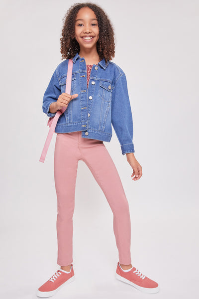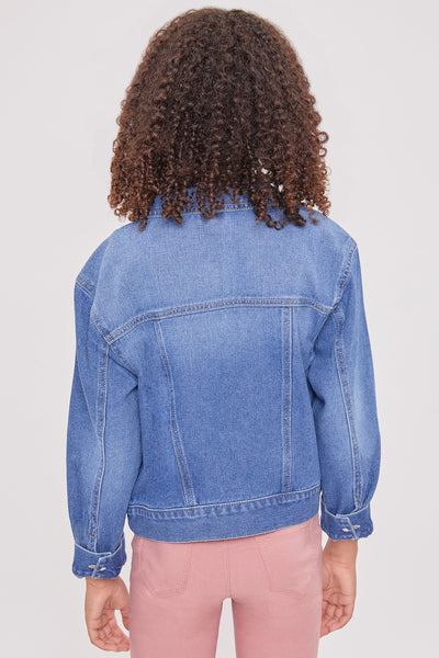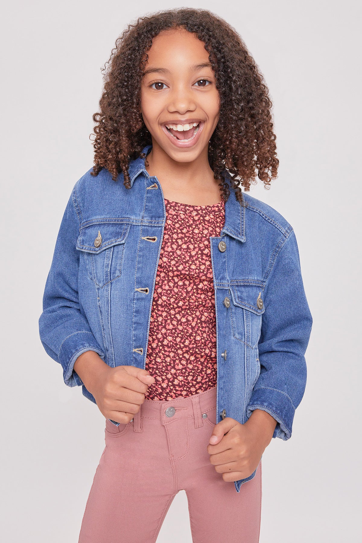 Too cool for school! Show your rebellious side in our Girls Basic Oversized Denim Jacket. This jacket is meant to be slightly oversized to give an easy and effortless look. You’ll want to layer this jacket over every outfit you wear because of how you feel in it! Designed in a variety of washes so you can switch it up! We love this jacket styled with our Hyperstretch jeans and a tee, or with denim jeans for a fun denim-on-denim moment!
