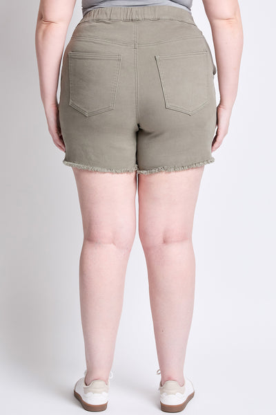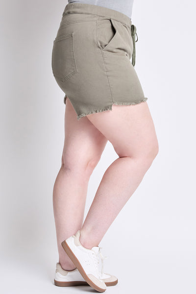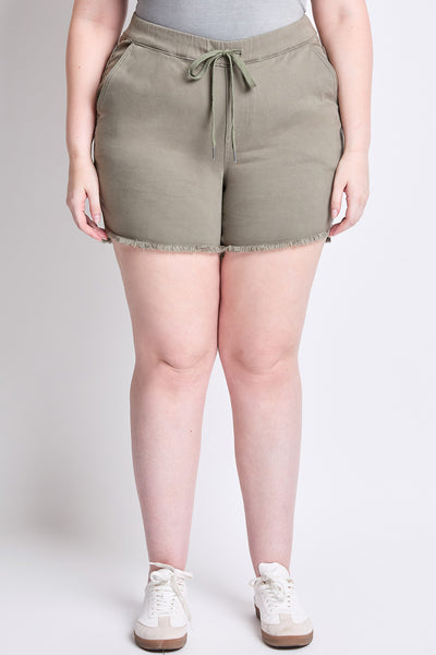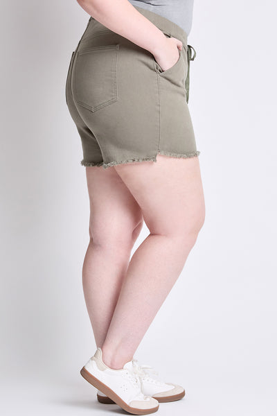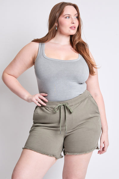 Keep it cool and fresh while having a greater range of motion with our Junior Plus Frayed Hem Pull-On Shorts. These are your go-to shorts for a quick and effortless styling decision. Whether it's a casual outing to laid-back adventures, you simply pull these on, draw the strings and go! Say goodbye to fussy buttons and zippers - these shorts are all about easy, breezy wear. Pair it up with a cute crop top or a body suit and sneakers to complete the look.