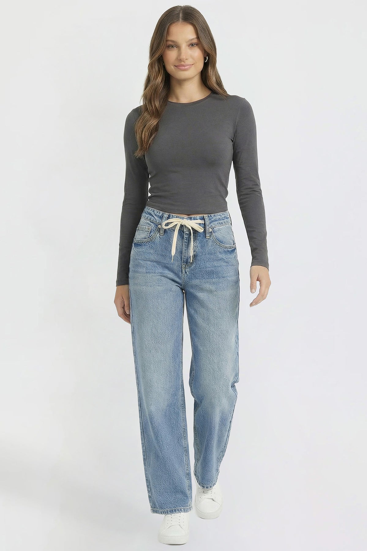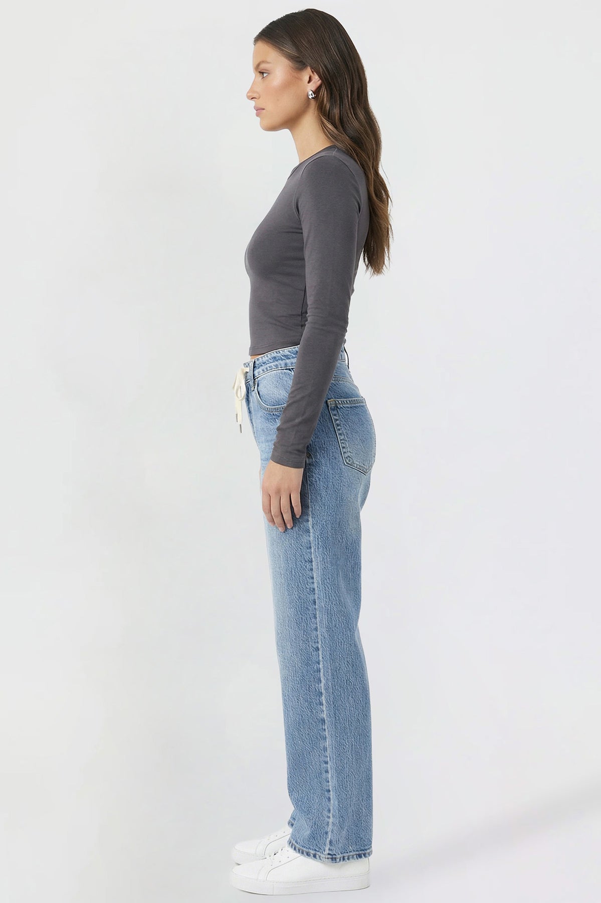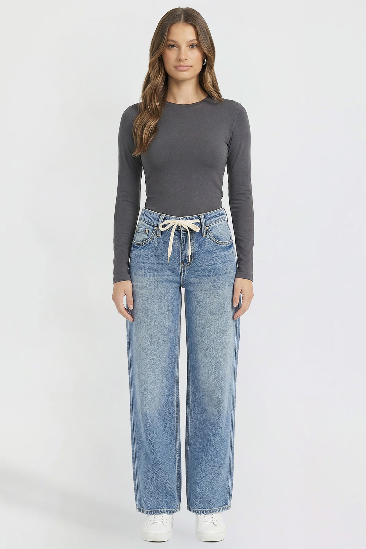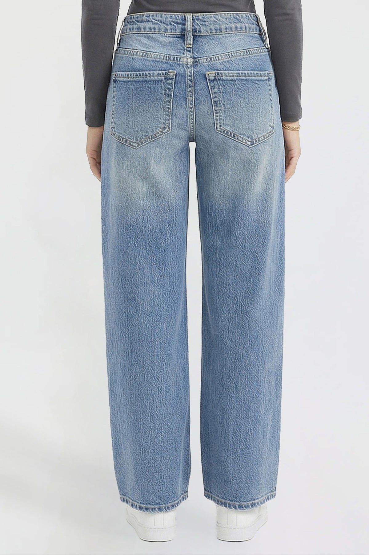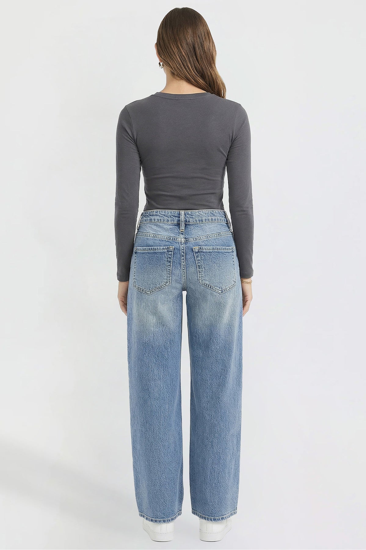 Throw it back to the ’90s with these low-rise wide leg jeans. Designed with a relaxed, vintage-inspired fit, they feature a button and zipper fly and classic five-pocket styling for an effortless, everyday look.