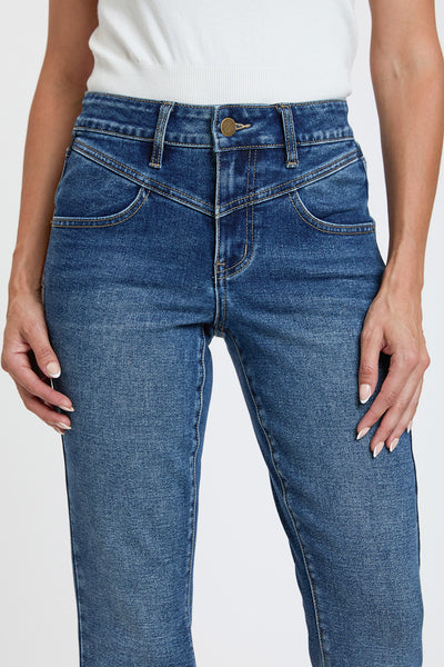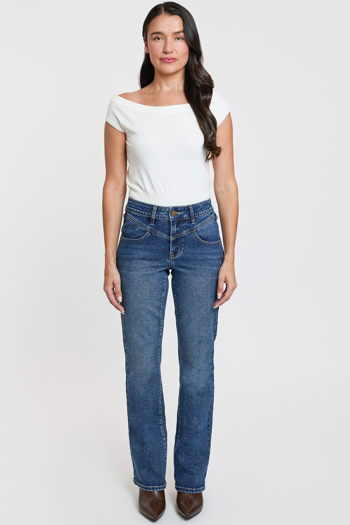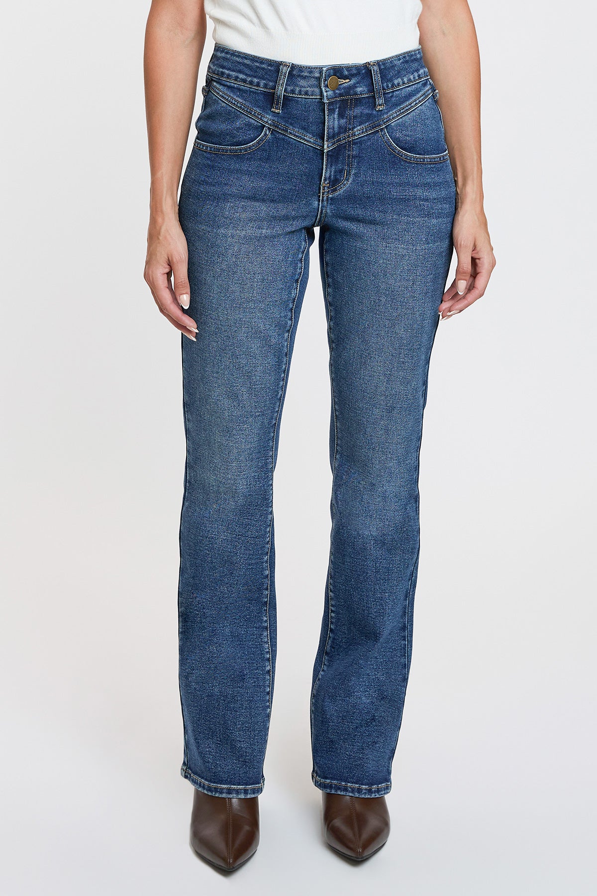 Flatter your shape and elevate your denim with the Women’s Contour V-Front Bootcut Jeans. Designed with a flattering V-front contour waistband and built-in tummy control panels, this pair smooths and supports for a sleek, confident fit. The classic bootcut leg balances your figure, making it easy to style with everything from boots to sneakers.
