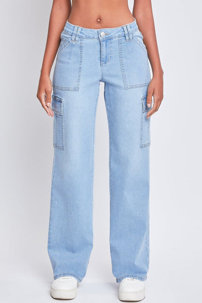 Dare to denim in our Women’s Low Rise Relaxed Cargo Jeans. This low-waisted jean features a relaxed fit for a cool look and comfortable feel you’ll love. Styled with a five-pocket construction with rectangular front pockets and flap cargo pockets at the side. These classic denim pants are detailed with a zip fly with single button closure and belt loops. Wear with your favorite graphic tee and tennis shoes for a street-smart look that’s sure to get you compliments!