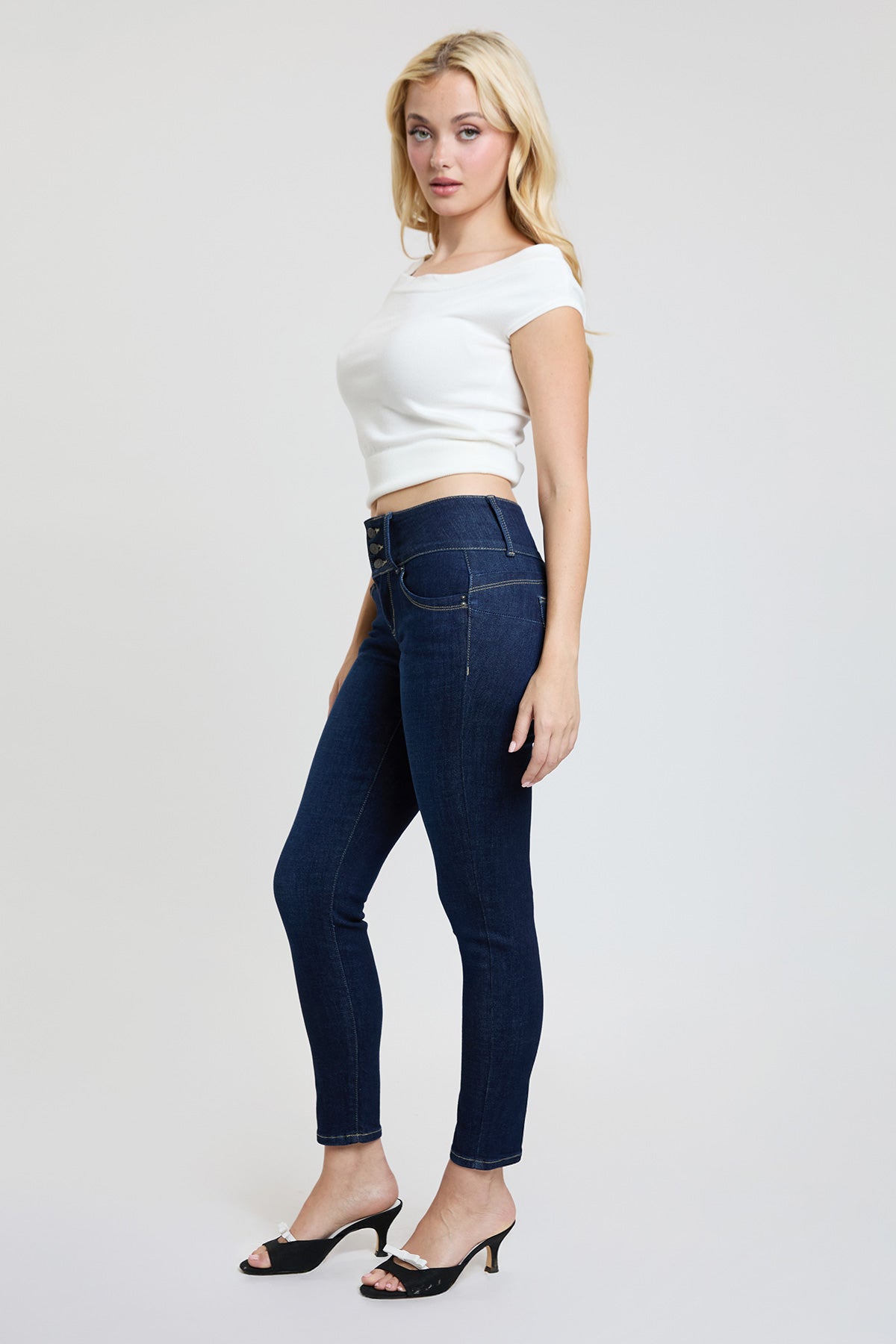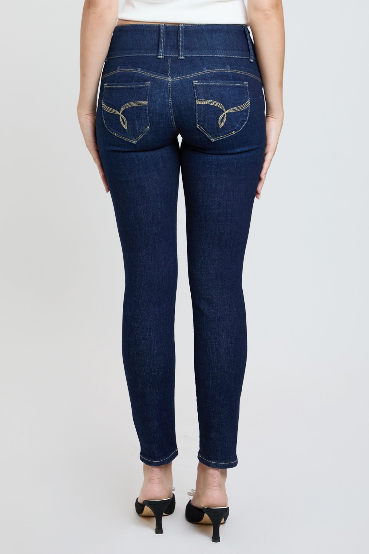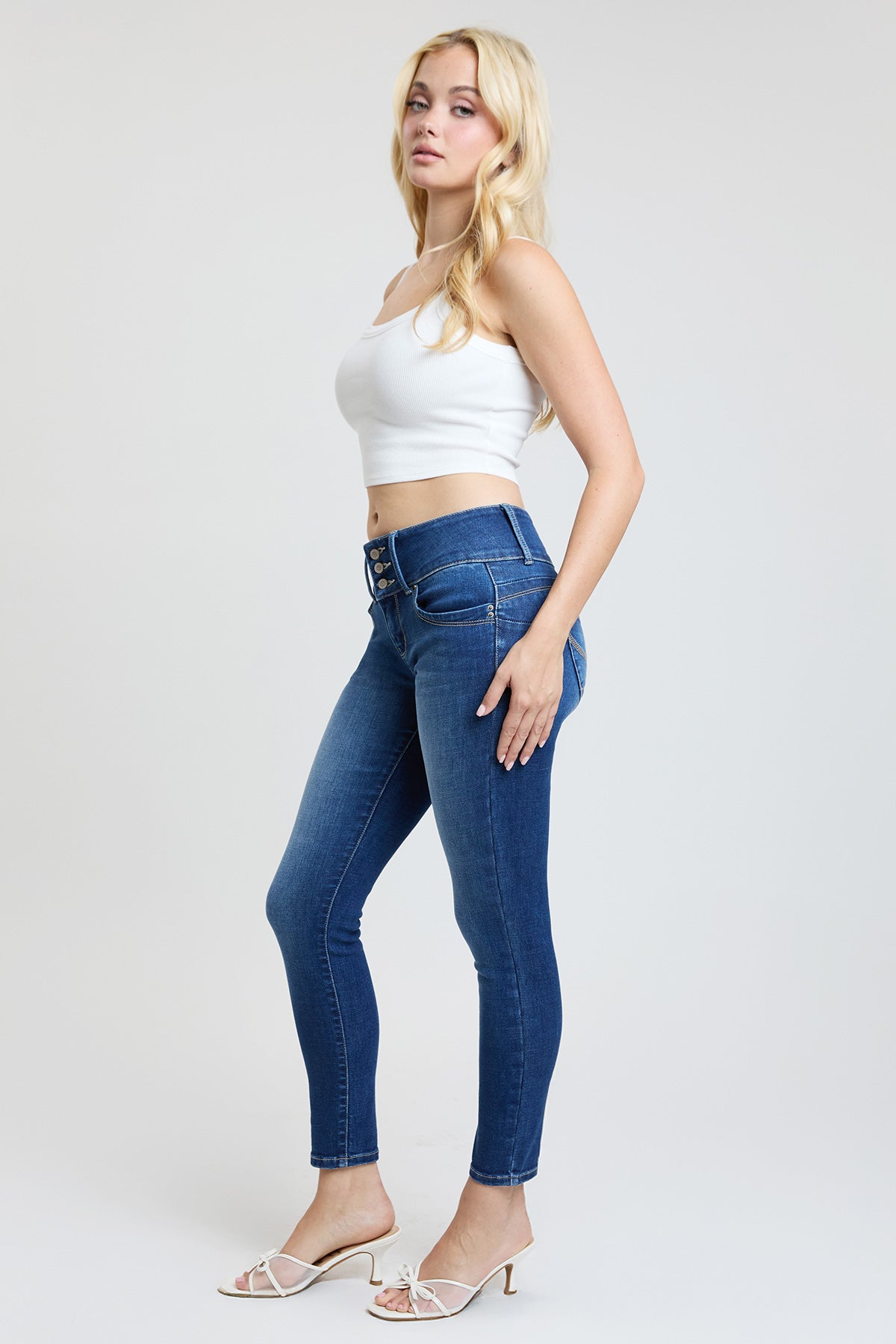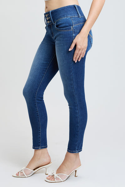 Women's Luxe Mid Rise 3-Button WannaBettaButt Skinny Jeans