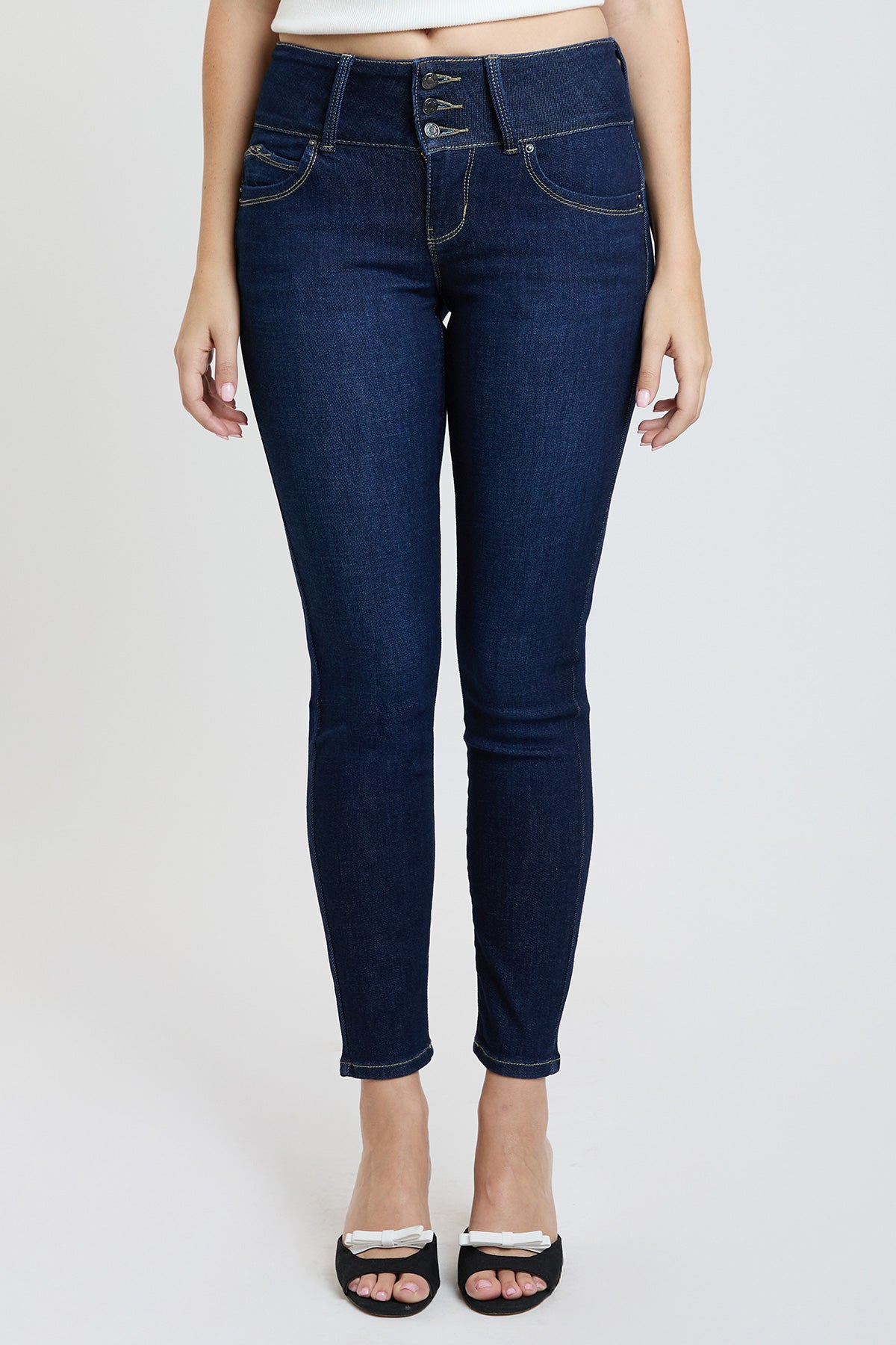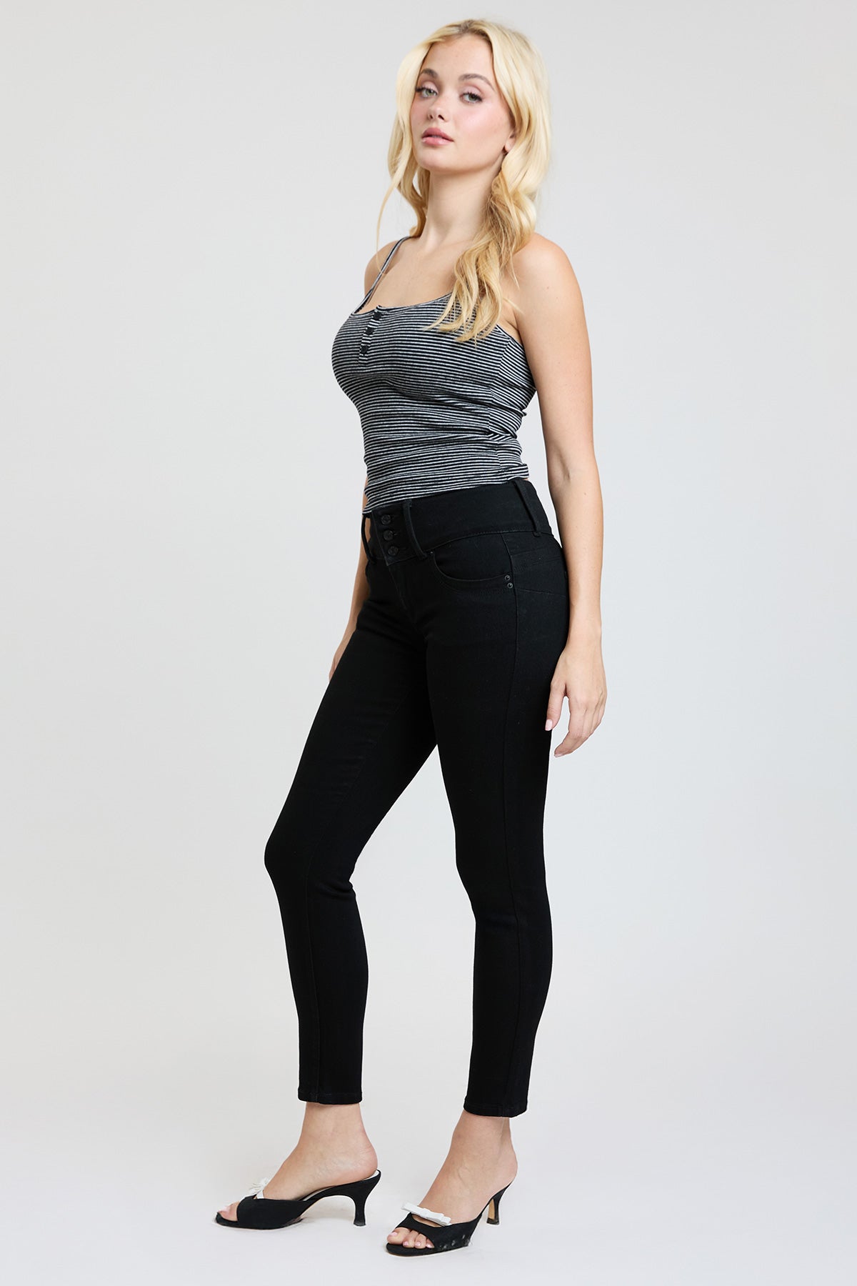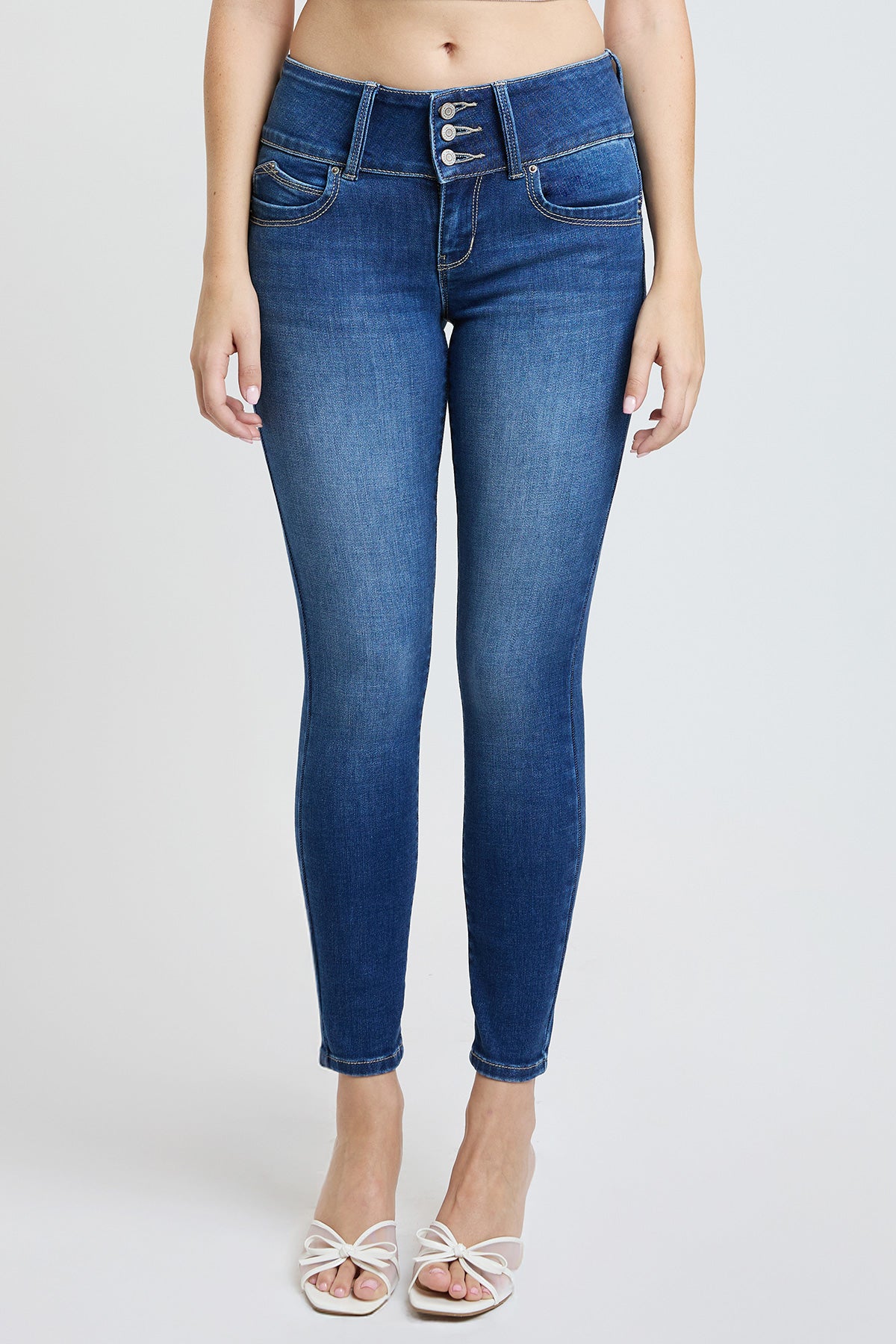 Women's Luxe Mid Rise 3-Button WannaBettaButt Skinny Jeans
