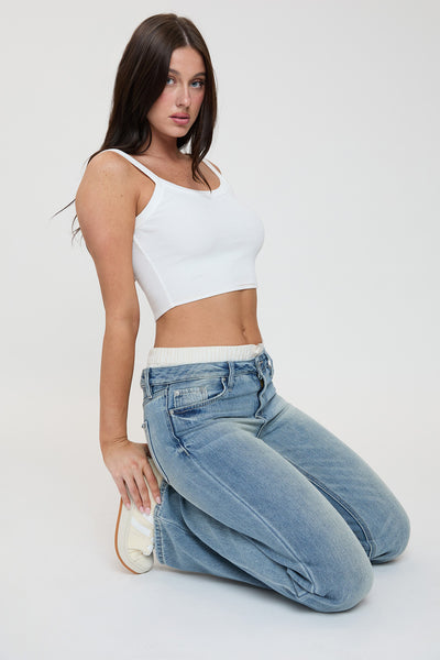 What sets these jeans apart is the removable boxer waist, adding a playful, layered look that can be customized to suit your style. Whether you keep the boxer waist for a trendy, layered vibe or remove it for a cleaner silhouette, these jeans offer flexibility and flair.
